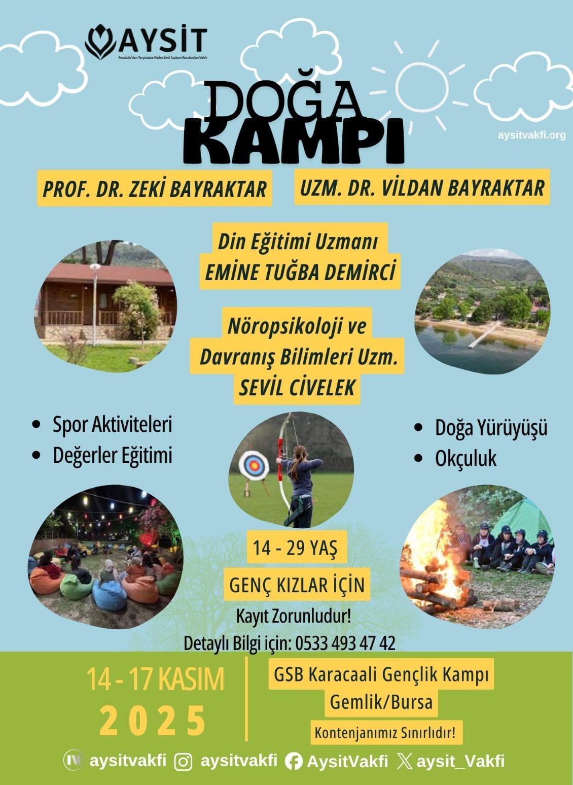 Aysit Vakfı olarak 14-16 Kasım tarihlerinde Bursa Gemlik GSB Karacaali Kamp Alanı’nda genç kızlara yönelik düzenlediğimiz doğa kampımızı tamamladık.